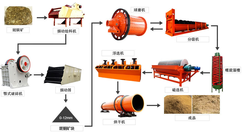斑銅礦,是自然界中常見的銅礦類型,也是提煉銅的主要原礦之一,在我國云南紅河有豐富的資源儲量,品質(zhì)較好、雜質(zhì)少,開采前景可觀,因此當(dāng)?shù)匾矃R聚了不少銅選廠,為我國銅金屬的自銷及出口打下了基礎(chǔ)。信聯(lián)重工有專業(yè)工程師量身為客戶打造產(chǎn)量每天為800噸的浮選生產(chǎn)線
