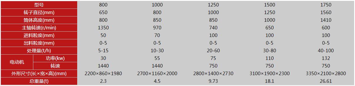 復(fù)合式破碎機(jī)參數(shù)