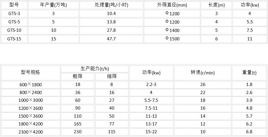 破碎的石料進入滾筒后,一方面隨著滾筒轉(zhuǎn)動而被篩選,一方面粒度大的石料沿著GTS型滾筒篩滾筒的斜度向前流動,通過不同網(wǎng)目的的篩網(wǎng)逐漸被篩出。不大的石料篩出后落入各自的漏斗,然后由人工運出或自流送往成品堆。